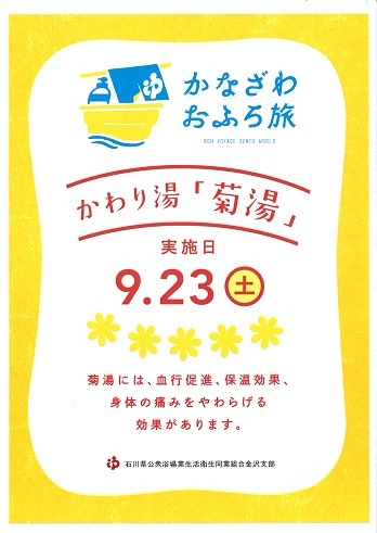 金沢支部イベント 9月23日㊏【菊湯】開催します。