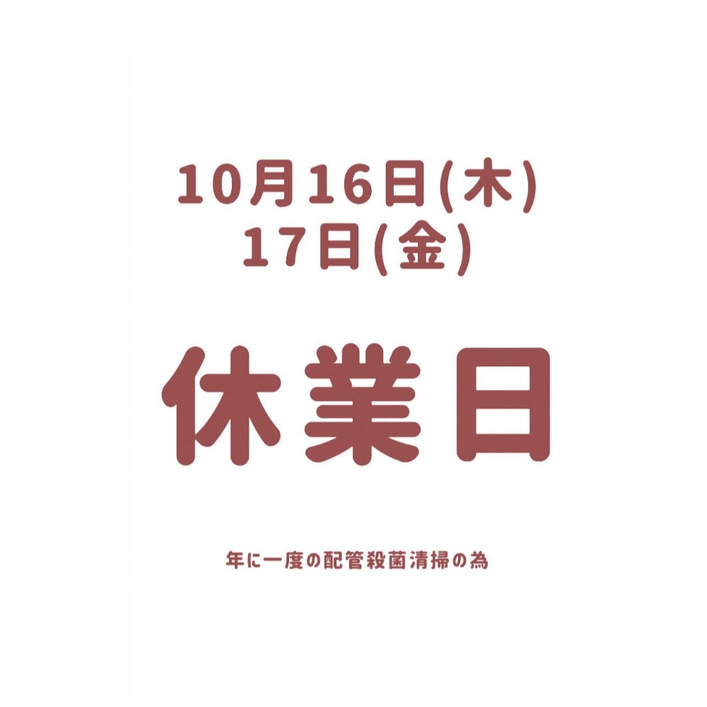配管浴槽消毒の為2日間お休み頂きます