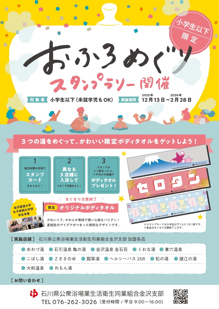 金沢支部イベント 小学生以下限定【おふろめぐりスタンプラリー】開催のお知らせ(12/13~2/28)