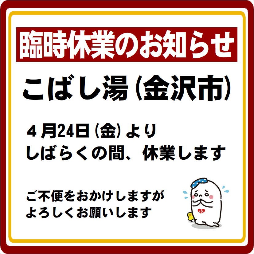 こばしゆ(金沢市)臨時休業のお知らせ(4/24~)